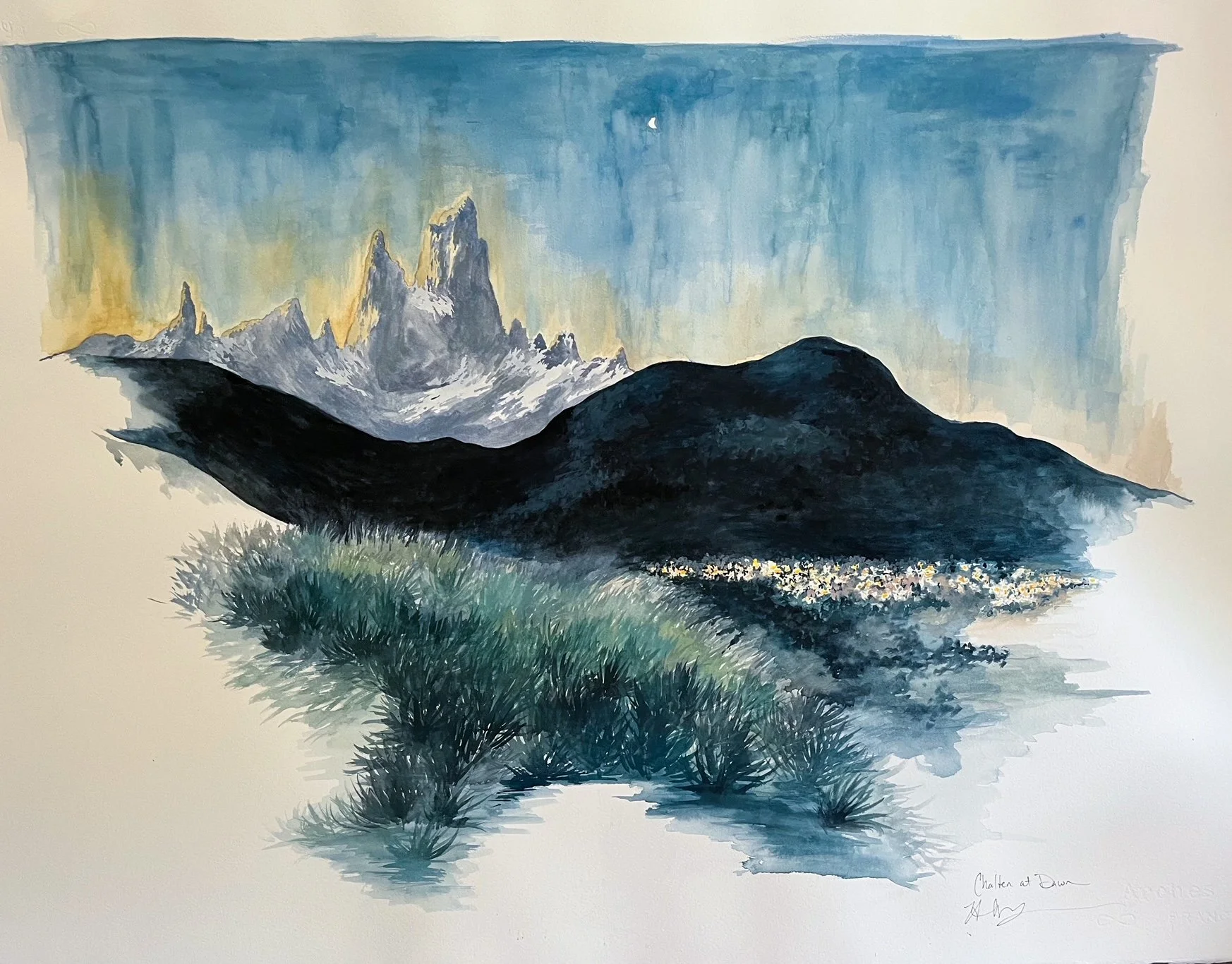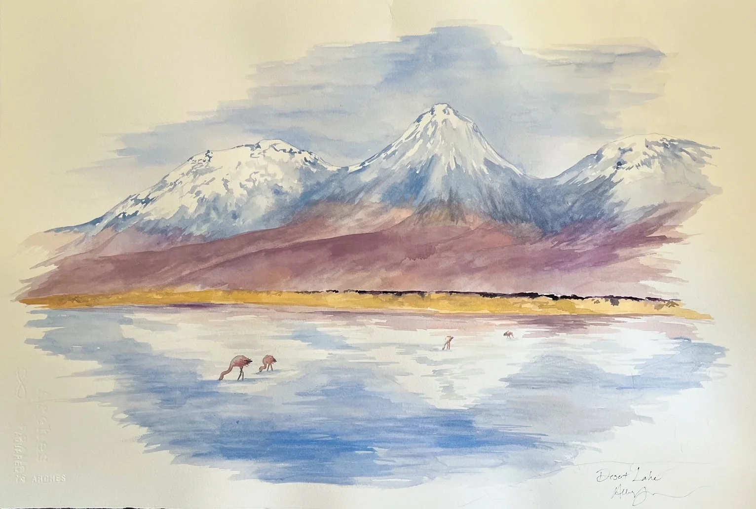 A few years ago, my husband and I had the opportunity to travel to South America and explore the Patagonian Region of Argentina and Chile. It is an extraordinary place full of beautifully bizarre landscapes, and plants and animals that are equally strange and interesting. I decided to paint a collection of the landscapes, flora & fauna of this region. This current collection of original work is up at Jola Cafe in Portland, Oregon for the months of August and September 2024. All pieces are watercolor on paper. Prints are available upon request.